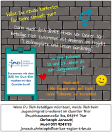 Möchtest Du sehen, um was es im zweiten Teil des Projektes geht oder bist Du ganz neu dabei? Zur Einstimmung und Information findest Du hier schon Mal ein paar Bilder. Unter dem Motto: "Wir machen das Quartier bunt", ist auch hier schon viel Farbe im Spiel.